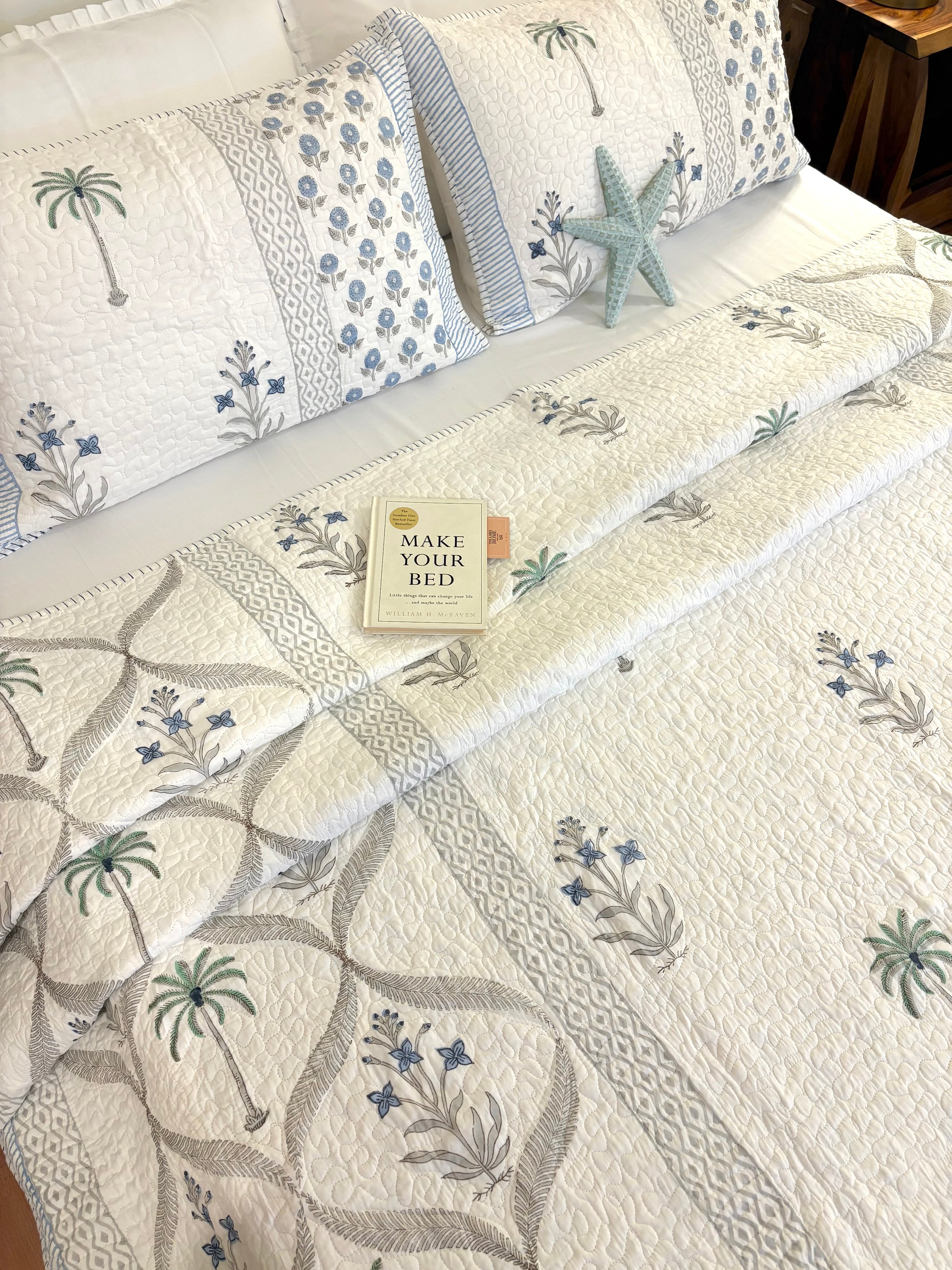 Blue Palm Whisper Quilted Bedcover