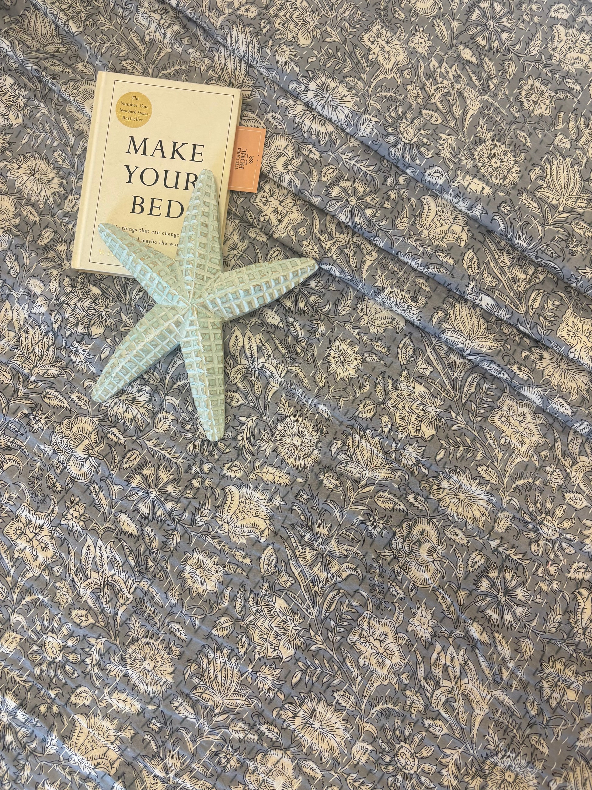 This beautiful Kantha bedcover has been handcrafted by Artisans in India. It is best used on a double bed as a bedspread. On a more artsy thought, you can play around with it as a sofa throw, folded runner or even a wall hanging.