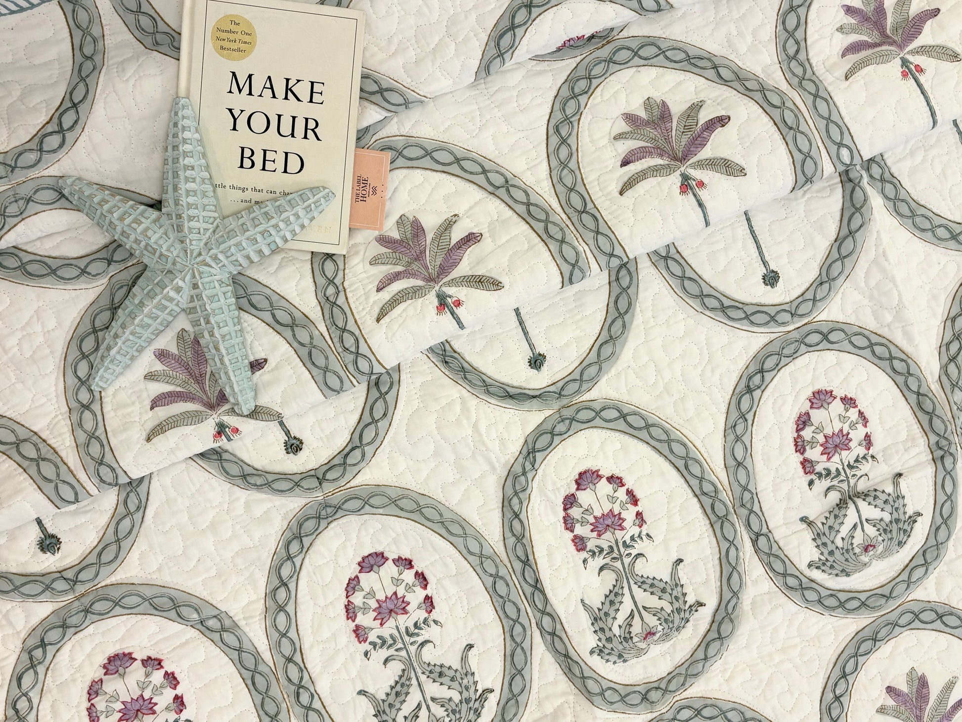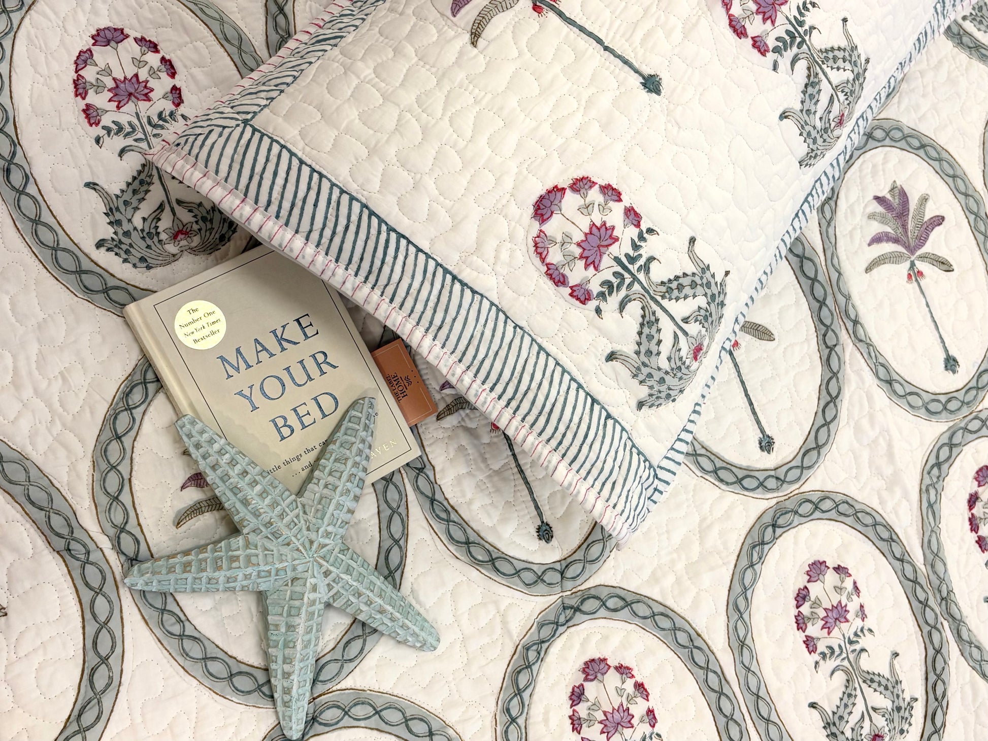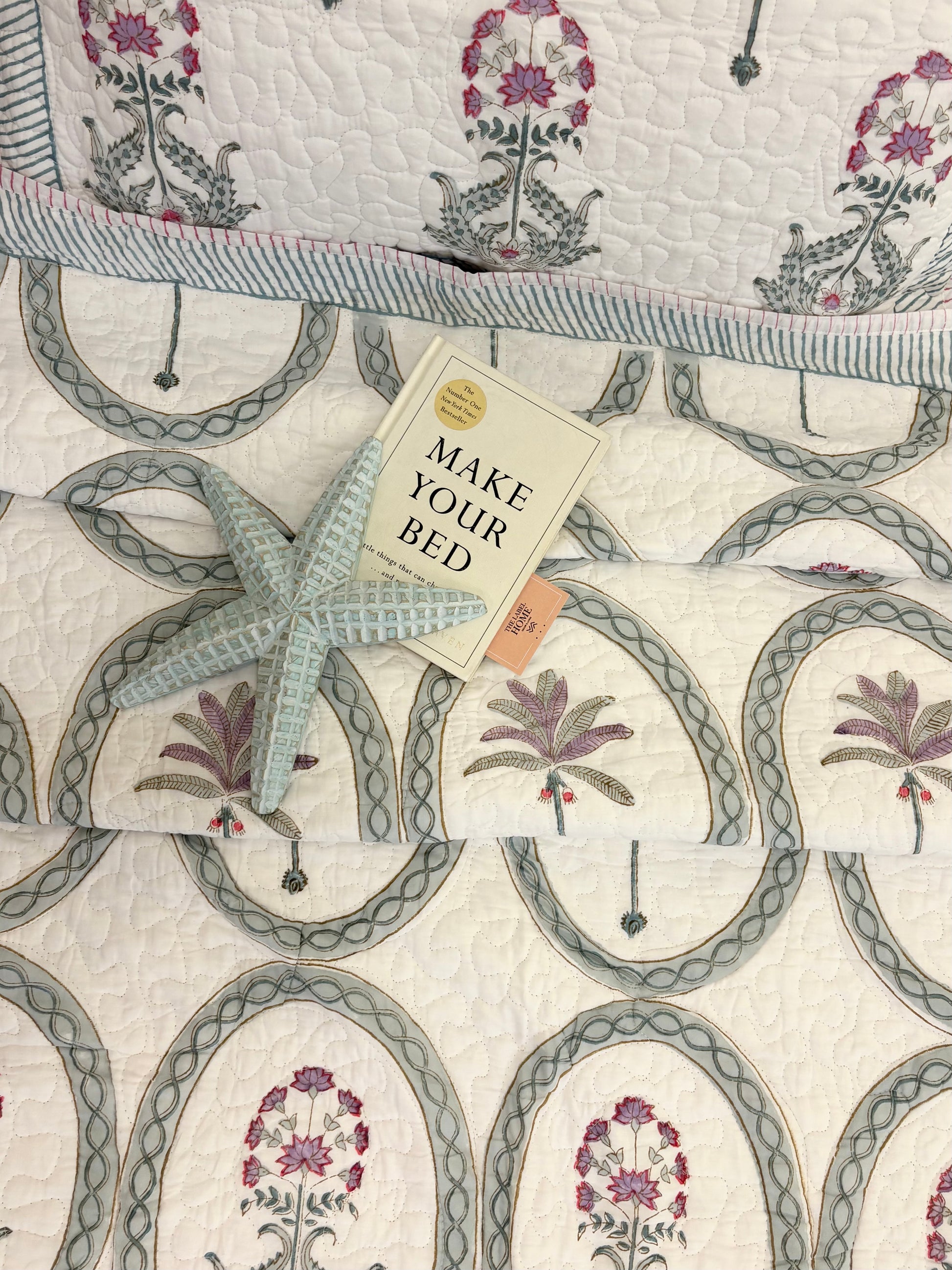 Elevate your bedroom with this handcrafted quilted bedspread — soft, breathable, and block-printed on rich mulmul cotton. Doubles as a comforter for year-round comfort and effortless style.