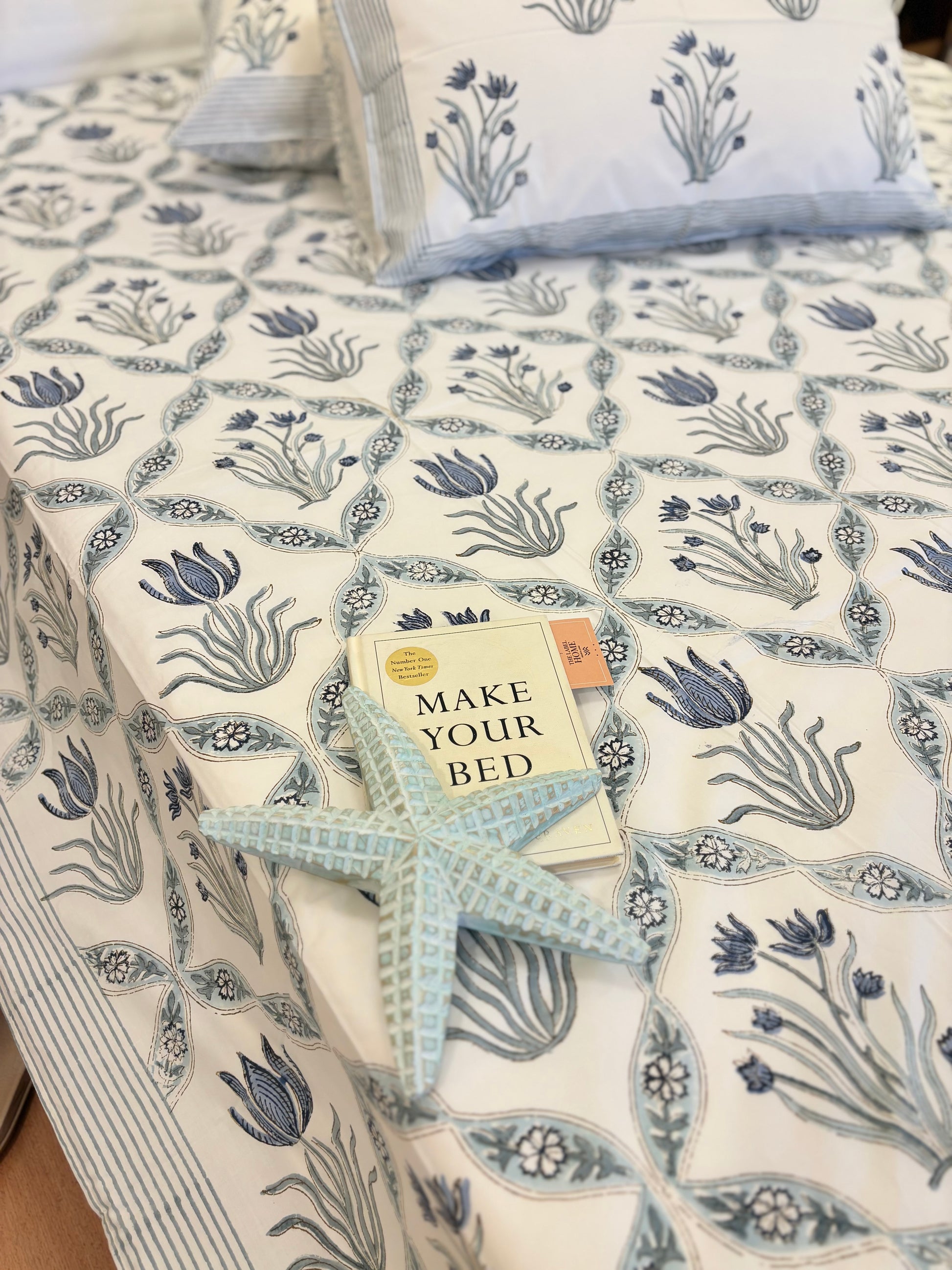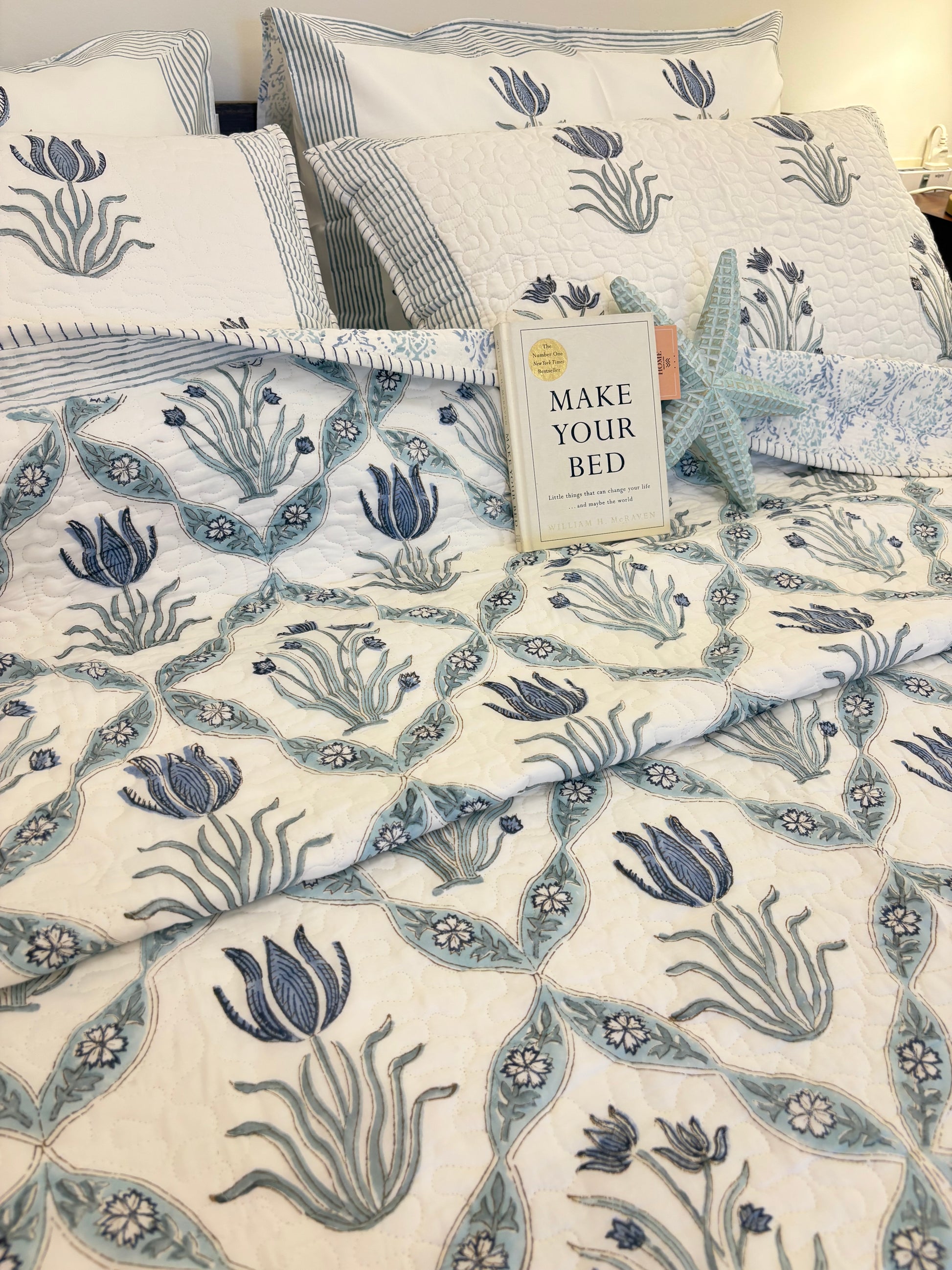 Elevate your bedroom with this handcrafted quilted bedspread — soft, breathable, and block-printed on rich mulmul cotton. Doubles as a comforter for year-round comfort and effortless style.