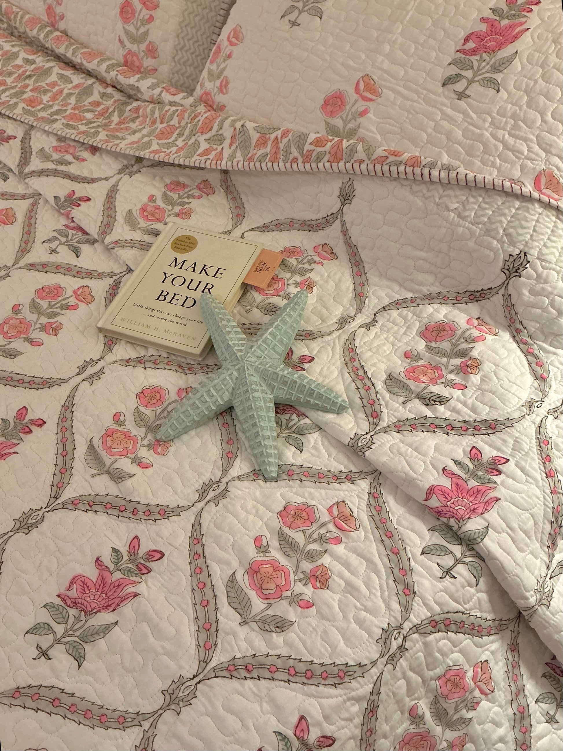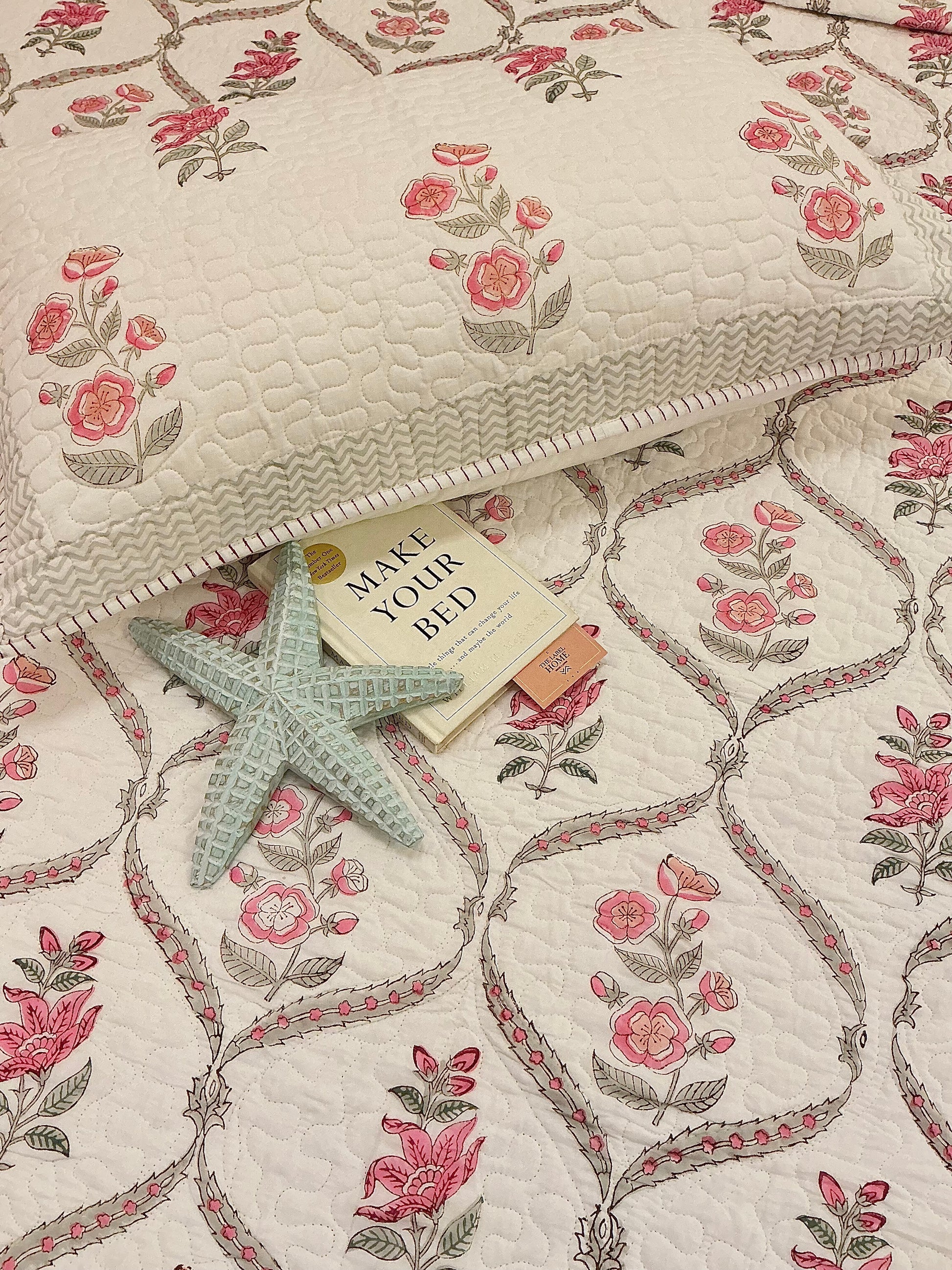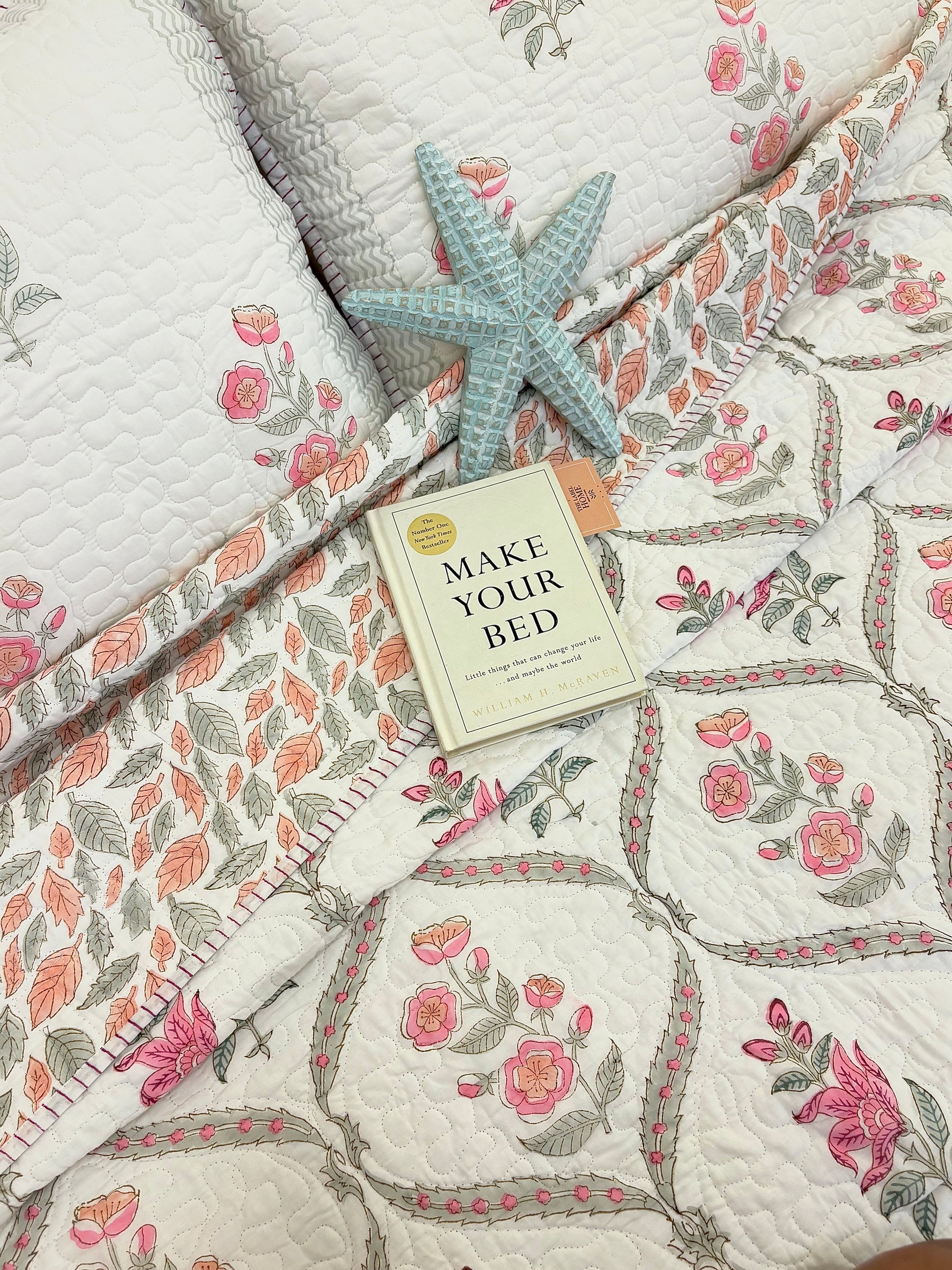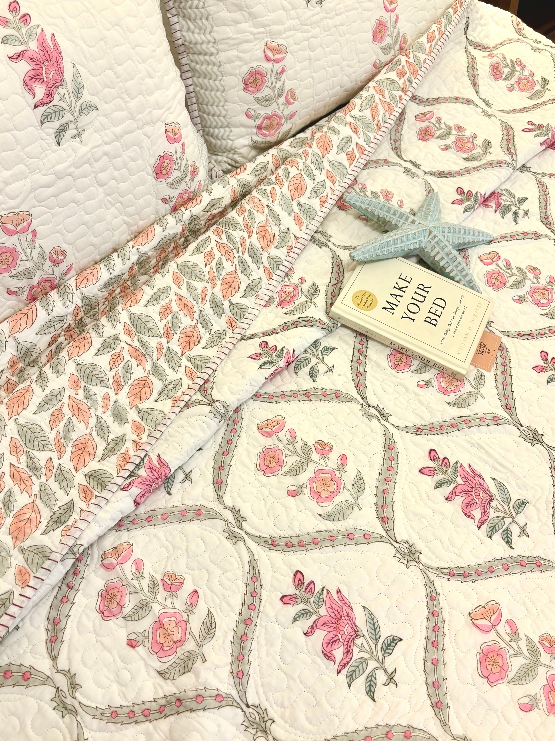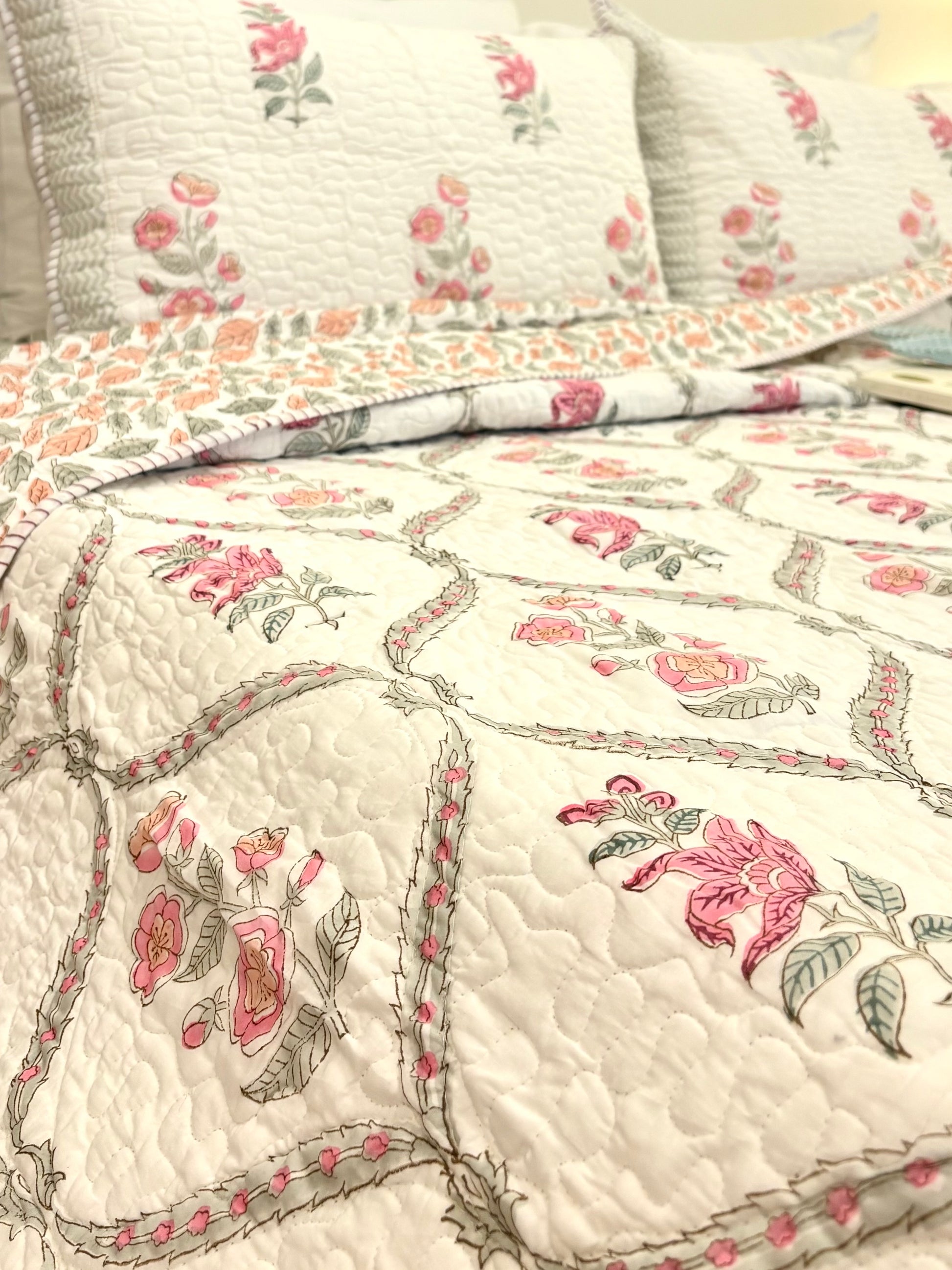 Elevate your bedroom with this handcrafted quilted bedspread — soft, breathable, and block-printed on rich mulmul cotton. Doubles as a comforter for year-round comfort and effortless style.